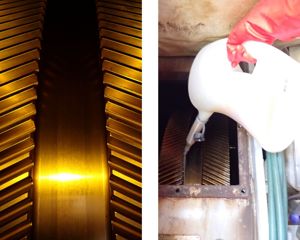 Les surfaces extérieures du compresseur, directement exposées à l’air salin, sont traitées avec le solvant VpCI-368D.